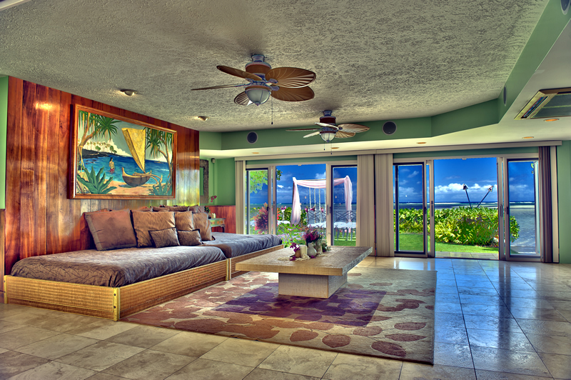 カリフォルニア出身のスーパーモデルで、いまや全世界でビジネスを展開しているライフスタイルデザイナー「Kathy Ireland」プロデュースの邸宅でのウエディング。 邸宅のオーナーは、エリザベステーラー、ジョントラボルタ、ジョージクルーニーなどハリウッドセレブのそうそうたる顔ぶれ。オーシャンフロントのこの隠れ家には、2フロアに渡り大きな6つのベッドルームがあり、モザイクタイル、プール、大きなガーデンがあり、プライベート感をしっかり保つためのセキュリティも万全。リビングや、ダイニング、ファミリールーム、マッサージスパというほとんどのお部屋から見事なまでのオーシャンビューが楽しめます。また、ハワイのコアウッドのフロアがおふたりやゲストにたくさんのアロハを感じさせてくれます。